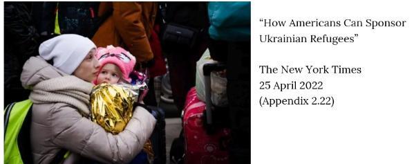I was able to gather 40 images from the Wall Street Journal (20 of Afghans, 20 of Ukrainians) and 50 from the New York Times (25 of Afghans, 25 of Ukrainians) which had more extensive coverage of refugees. I looked at the size of groups represented in photos, and whether children could be clearly identified in these photos. This was to test both Bleiker and Christie’s statements on what kind of images created an emotional response.