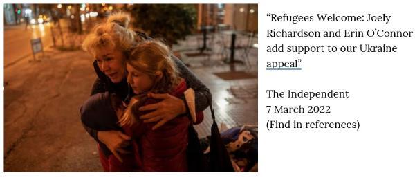 Cohen, D., 2022, ‘Refugees Welcome: Joeley Richardson and Erin O’Connor add support to our Ukraine appeal’, The Independent. [Online]. Available at: https://www.independent.co.uk/news/world/europe/joely-richardson-erin-o-connor-ukraine-b2030023.html [Accessed 11 September 2025].